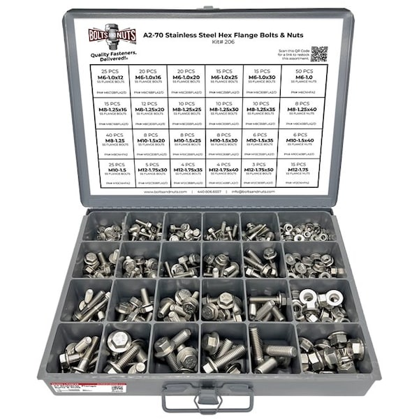 GR5, GR8, 18-8 Stainless Steel, A2-70 Stainless Steel, CL8.8, and CL10.9 Hex Flange Bolt Assortment Kits