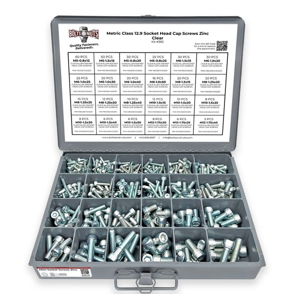- • 453 Pieces - High Quality Metric Class 12.9 Socket Head Cap Screws Zinc Clear Assortment