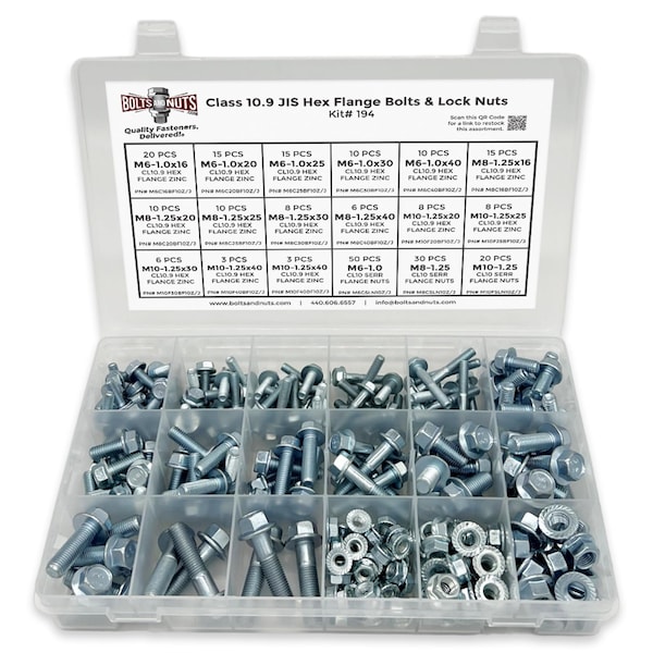 Metric Class 10.9 JIS Hex Flange Bolts & Nuts Assortment - 248 PCS
