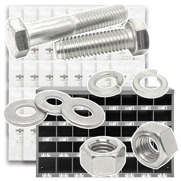 - • Hex Cap Screws, Finished Hex Nuts, Flat Washers, and Lock Washers Assortment - 2012 Pieces