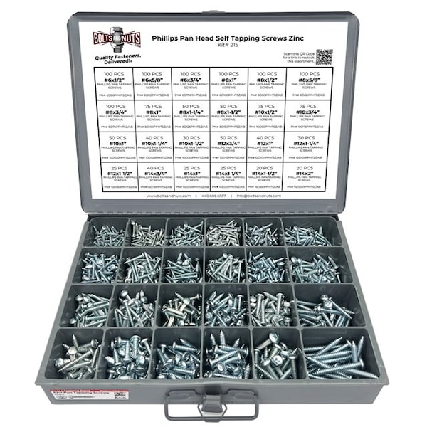 - • 1421 Pieces - Phillips Pan Head Self Tapping Sheet Metal Screw Assortment Kit!