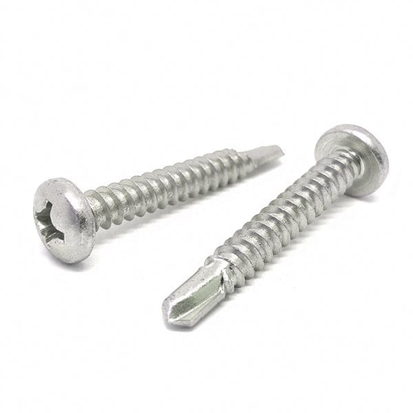Self-Drilling Screw, #8 x 1-1/2 in, Plain 410 Stainless Steel Pan Head Phillips Drive, 1000 PK