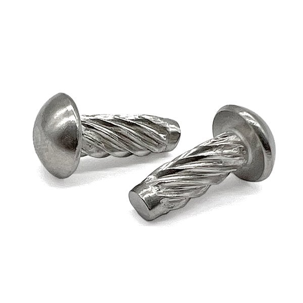 Drive screws are pressed or hammered into an appropriate-sized cylindrical hole. The spiral threads dig in to the material,creating a relatively secure interference fit.