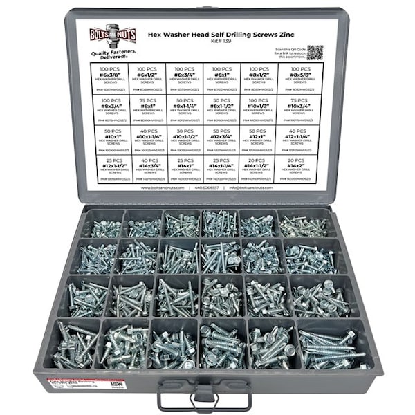 - • 1466 Pieces - High Quality Unslotted Hex Washer Head Self Drilling Tek Screw Assortment!
