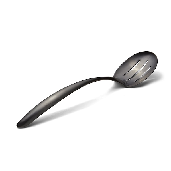 Ez Use Banquet Serving Slotted Spoon 13.5" W/Hollow Cool Hndl - Black Matte