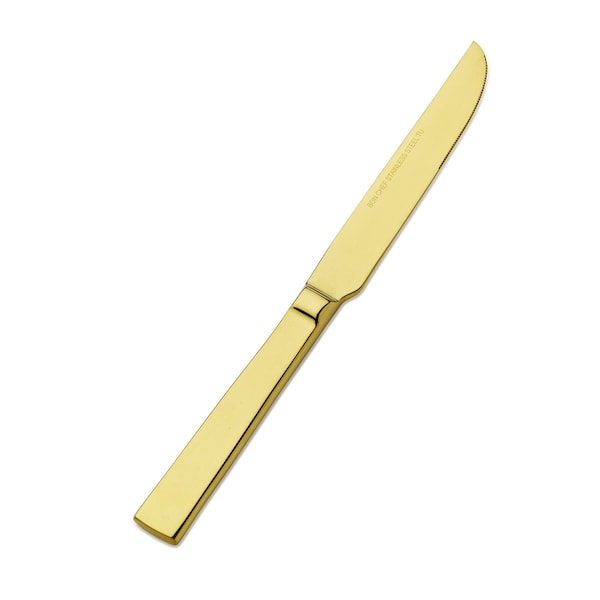 Roman, Dinner Knife, Euro, Solid Handle, Mirror Finish, 13/0, 9.38" - Gold , set of 12