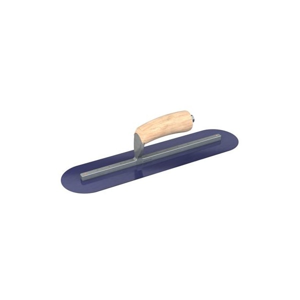 Blue Steel Finishing Trowel - Round End - 16" x 3" with Camel Back Wood Handle