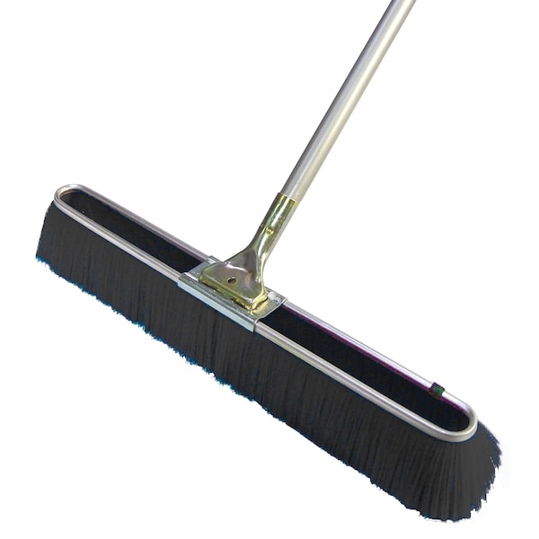 Floor Broom, Medium Black Bristles, 24", 60" Metal Handle
