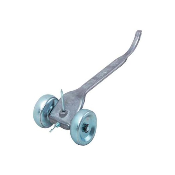 one piece cast aluminum; equipped with big 1 3/4 diameter wheels; contoured handle has a squared off end to rod joints