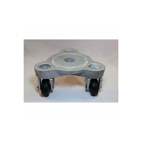 the model 2076 dolly is a cast iron base 10in end to end with 1-1/4in deep center hole, measuring 1-3/4in at the top and 1-1/4in at the bottom. overall height is 4-1/4in. The 2-1/2in diameter wheels are chosen based on the weight carried and the environmental needs. The high grade hard rubber tread wheels are used for providing maximum floor protection; made from natural hard rubber 95 shore a rubber with self-lubricating bushed bore. This wheel provides a weight capacity of 525 lbs. Per dolly. Each dolly weighs 14.5 lbs.