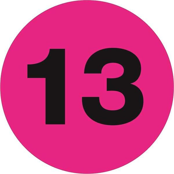 3 in. Circle - 13 Fluorescent Pink Number Labels - Roll of 500