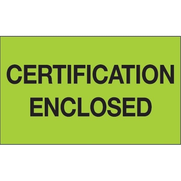 3 x 5 in. - Certification Enclosed Fluorescent Green Labels - Roll of 500