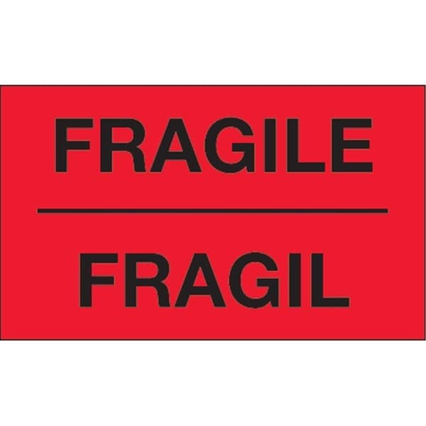 3 x 5 in. - Fragil Fluorescent Red Bilingual Labels - Roll of 500