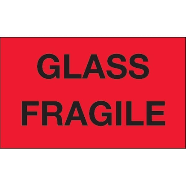 3 x 5 in. - Glass - Fragile Fluorescent Red Labels - Roll of 500
