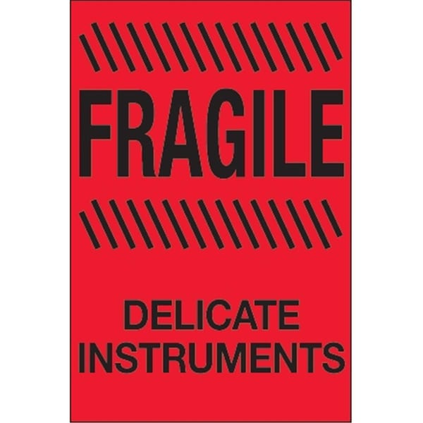 4 x 6 in. - Fragile - Delicate Instruments Fluorescent Red Labels - Roll of 500