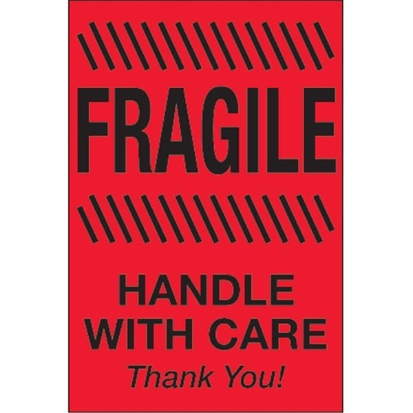 4 x 6 in. - Fragile - Handle with Care Fluorescent Red Labels - Roll of 500