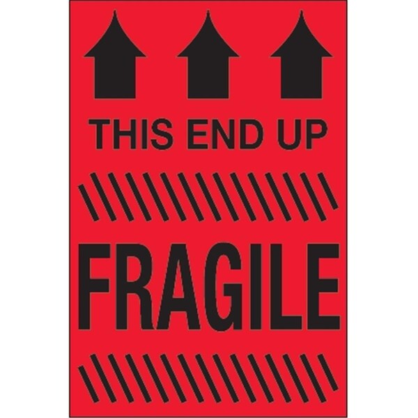 4 x 6 in. - This End Up - Fragile Fluorescent Red Labels - Roll of 500