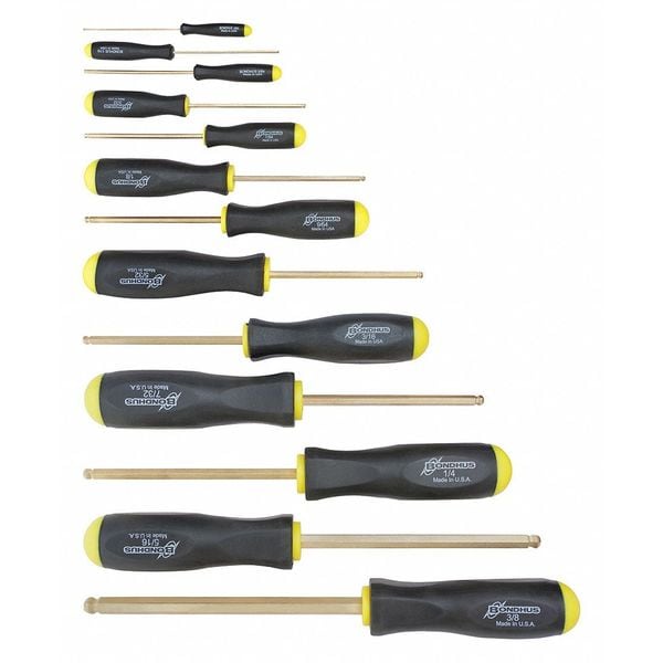 13 Piece GoldGuard Plated Ball End Screwdriver Set - Sizes: .050-3/8"