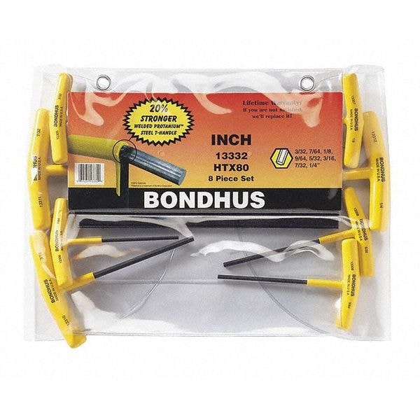 The Bondhus 13332 8 Piece SAE T-Shape Hex Key Set is a versatile set of hex keys that can help you tackle a wide range of fasteners. This set contains a comprehensive range of sizes to meet your needs. It comes with an attractive ProGuard finish, which not only helps to resist corrosion but also makes the tools more durable and easy to clean. The steel handles are comfortable and provide a solid grip for all tasks. Each hex key has its size clearly marked on it, so you will always know which tool you need for the job at hand. They have a T-shape design that provides better control and access in tight spots where standard hex keys cannot reach. Whether you are working on household appliances or heavy machinery, this 8 Piece SAE T-Shape Hex Key Set from Bondhus is the ideal choice for tackling all types of fasteners with ease.