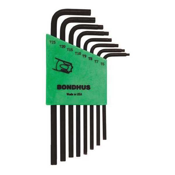 The Bondhus 31832 8 Piece Torx? L-Shape Hex Key Set offers a comprehensive range of hex keys for tackling various fasteners. These L-shaped hex keys can be used across an extensive range of applications and product categories. This set comes in a protective ProGuard finish that protects against corrosion, making it ideal for use in harsh environments. The torx? key set is made from Bondhus Protanium high torque industrial tooling metal with extra-strength heat treatment, so you know it's built to last. Each long arm hex key is compatible with all standard torx? wrenches and screwdrivers, giving you the flexibility to tackle various tasks with just one tool. Whether you are a professional or hobbyist, you will definitely want to equip yourself with the Bondhus 8 Piece Torx? L-Shape Hex Key Set.