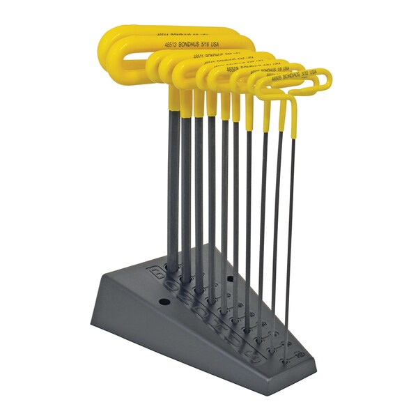 Set 10 Cushion Grip Loop Hex T-Handle 9" 3/32-3/8", w/stand