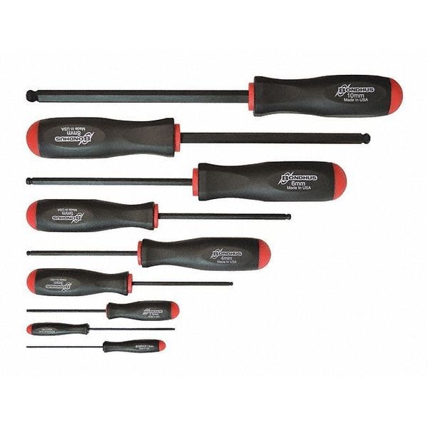 If you are looking for a quality set of ball end screwdrivers, then Bondhus' 10699 Set 9 Ball End Screwdrivers is the perfect choice. The Bondhus ball end screwdrivers come in metric sizes ranging from 1.5 mm to 6 mm. This set comes with 9 pieces and features a ProGaurd finish that helps resist corrosion and rusting. It also has an ergonomic handle that makes it easy to grip and provides added comfort when working on your project. If you are looking for the best in class, then look no further than Bondhus' 10699 Set 9 Ball End Screwdrivers.