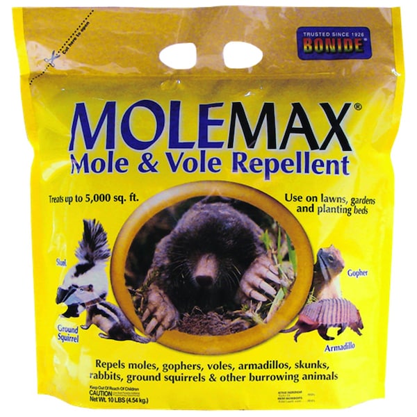 Ingredients: Ricinus Communis OilDustless biodegradable granules are safe for use around children, plants and pets. Repels moles, voles, gophers, rabbits, armadillos and skunks in lawns, flowerbeds, gardens. 1 lb treats 500 sq-ft and lasts up to 3 months. Contains 10% Ricinus communis oil caster oil.