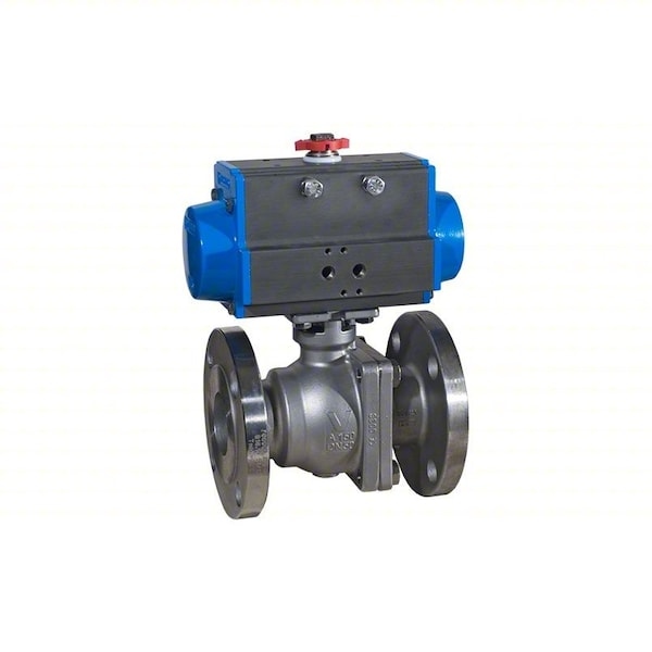 Pneumatically Actuated Two-Way Ball Valve, Nominal Valve Size 2 in, Actuator Operation Air to Air, Ball Material Stainless Steel, Valve Deactivated State Normally Closed (NC), Normally Open (NO), Fail Safe Position Fail Last, Included Pilot Solenoid 110V AC Pilot Solenoid, Valve Body Style Straight, Body Material Stainless Steel, Average Surface Roughness (Ra) less than 1.0 micron, Ball Port Style Full Port, Maximum Pressure - Operating 275 psi, Maximum Pressure - Steam 150 psi