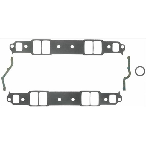 Performance intake manifold gaskets must prevent air oil and dirt from being sucked into the intake ports and prevent coolant from leaking out of the coolant ports. For performance engines this is complicated by the variety of aftermarket cylinder heads and intake manifolds in use. performance intake manifold gaskets have been tested for use with all popular aftermarket cylinder head and intake manifold combinations. In addition most performance intake manifold gaskets do not have a metal core which allows engine builders to trim the gasket to ensure an exact fit on modified ports. offers a solid core intake manifold gasket for high vacuum race engines as well as performance applications that have a long expected service life i.e. street machines marine use or tow vehicles. The solid core provides extra strength and stability and the gaskets come in proven port shapes used in race intake gaskets. Features -Compatibility - Chevy Small Block -Port Shape - Rectangular -Port Length - 2.21 in. -Port Width - 1.31 in. -Material - Composite -Thickness - 0.120 in. -Recommended Use - Performance