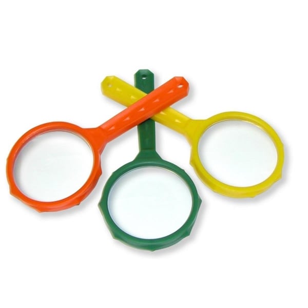 Features -Its colorful and fun. -These 3x power 50 mm. all glass magnifiers provide crystal-clear optics. -Great learning tool for children of all ages. -They are small enough and lightweight enough to fit in backpacks or even pockets. -Dimension - 5 x 2.3 x 0.3 in. -Item Weight - 1.5 oz. -Box of 50.