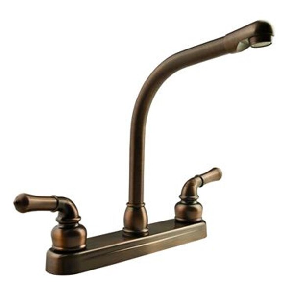 Features -10 in. Tall Brass Spout -Premium Grade Light Weight Synthetic Waterways -Plated Plastic Classical Lever Style Handles Specifications -Recommended Use - Kitchen -Type - Single Piece 8 in. Deck Mount -Size - 8 in. -Spout Type - 10 in. Hi-Rise Classical Spout -Handle Type - Teapot -Number of Handles - 2 -Finish - Oil Rubbed Bronze Coated -Material - Plastic -Valve Type - Washerless Cartridge