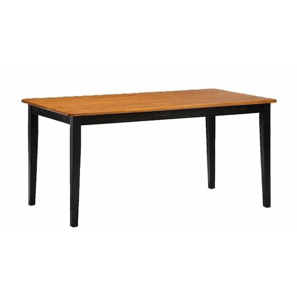 Shaker styling from earlier, simpler times. Fits into many decors. Black distressed paint on apron and legs compliments oak finish top beatifully. Full size 36" x 60" to seat up to six guests and family.