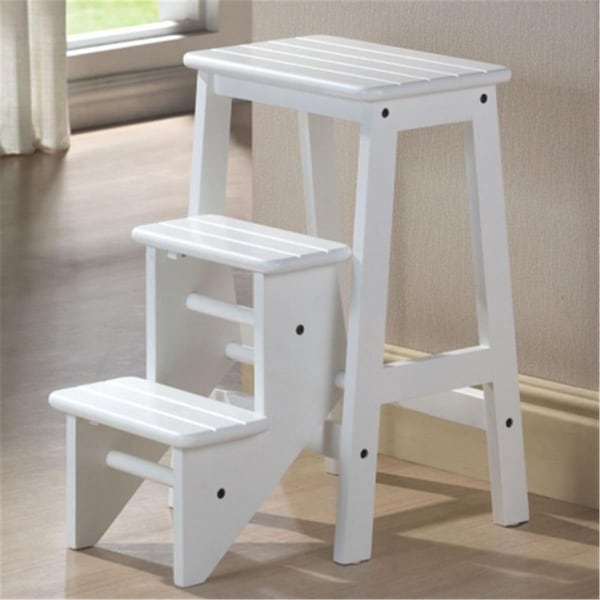 Its time to step up your stool game with the Boraam Niko Step Stool. Crafted from solid hardwood, this stool is an attractive and functional piece of furniture. A safety latch ensures secure use when youre reaching for those high cupboards and shelves. This three-level step stool can easily fold up for out-of-the-way storage when its not actively being used. However, you dont have to hide away the stool in a closet! Instead, decorate it for display with picture frames and small potted plants. The Niko step stool is constructed with solid hardwood for years of use Opens up to a 3-step stool Protective floor glides on base 13 in depth when folded