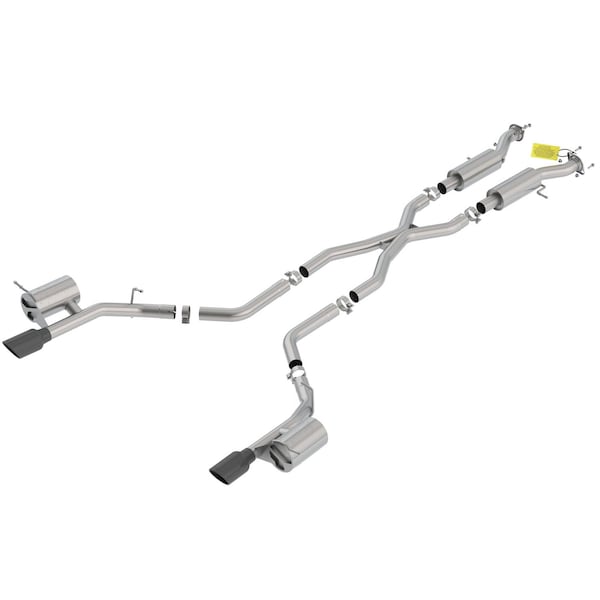 T-304 Stainless Steel; With Mufflers; 2-3/4 Inch Pipe Diameter; Dual Exhaust With Dual Exit; Split Rear Exit; 4-1/2 Inch Single Round Angle-Cut Black Chrome Tips