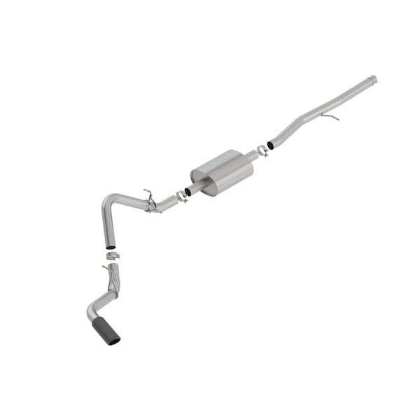 T-304 Stainless Steel; With Muffler; 3 Inch Pipe Diameter; Single Exhaust With Single Exit; Single Passenger Side Rear Exit; With 4 Inch Single Round Rolled Angle-Cut Black Chrome On Stainless Steel Tip