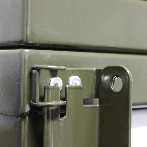 Utilized in mobile and high-risk applications, can secure all drawers with a single padlock (padlock not included). Can be mounted to either left or right side of cabinet and shipped pre-assembled when ordered with cabinet, requires drilling when field assembled.