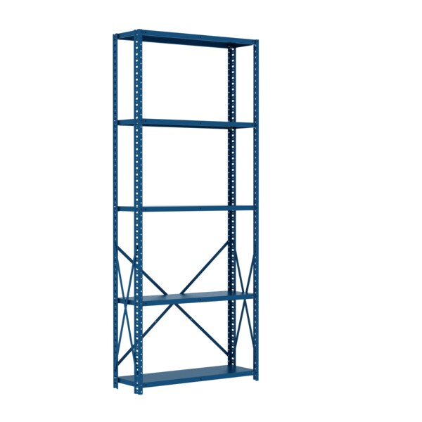 Flexible, open-type shelving that consists of posts, shelves and sway braces for added stability. This Box Edge Open 5 Shelves Starter Unit is ideal for general purpose storage and meets most storage requirements while providing maximum efficiency. The dimensions for this unit are 87"H x 36"W x 24"D. The Adder part number for this unit is 1007-3.