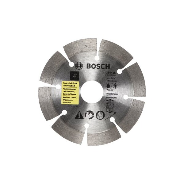 4, Standard, Segmented Rim Diamond Blade, For Universal Rough Cuts, Medium Diamond Bond Provides Long Life In General Purpose Cutting Applications, Improved Diamond Size Quality Delivers Fast Cutting, Consistent Diamond Content Even Distribution Offers Reliability In Performance, Cuts Variety Of Materials Applications Include Pavers, Soft Brick ConcreteBlock