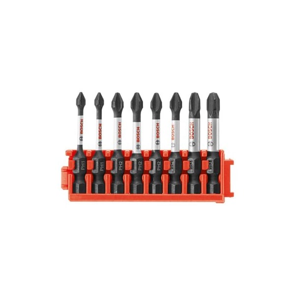 Impact Tough, 8 Piece, 2, Phillips, Power Bit Set With Clip For Custom Case System, Consists Of 2 P1, 4 P2 2 P3 Power Bits, Provides 10X Life Over Standard Impact Bits, XTended Torsion Zone Helps Bit Absorb High Torque Of New Impact Drivers, TiltInTiltOut Case Mechanism Allows Easier Access To Bits, Customizable, Convenient Bit Clip Allows Users To Snap InSnap Out Precisely Bits That They Need, Precision Engineered Bit Tips Deliver A Tighter Fit Less Cam Out, Heat Treated Bit Manufacturing Provides Stronger Bit, High Visibility Bit Sleeve Markings Makes Finding Correct Bit For Job Easier, Durable Case Features A Secure Case Latch Rubber Bumpers, High Visibility Bit Sleeve Markings Makes Finding Correct Bit For Job Easier