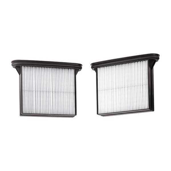 Cassette Filter, For Vacuum Type Shop Vacuum, Fits Vacuum Brand Bosch, Fits Vacuum Models JS470E, JS470EB, PL1682, Filter Pickup Type Wet/Dry, Filtration Type HEPA, Filter Efficiency 99.93 Percent at 0.3 microns, Filter Material Paper, Filter Reusability Reusable, Height 5 in, Length 11 in, Width/Diameter 8 in, Package Quantity 2