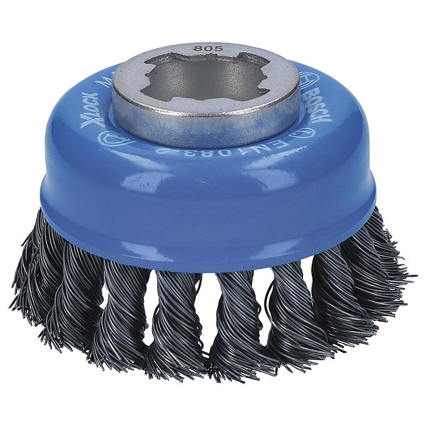 Cup Brush, Product Type Cup Brush, Quick Change System Not Applicable, Bristle Type Standard Twist Knot Wire, Bristle Material Carbon Steel, Brush Dia. 3 in, Wire Dia. 0.002 in, Bristle Length 1 in, Grit Not Applicable, Overall Length Not Applicable, Compatible Tool Type Right-Angle Grinder, Color Not Applicable, Primary Material Application Stainless Steel, Connector Type X-Lock, Connector Size Not Applicable, Operating Speed - Maximum 12,500 RPM, Shank Length Not Applicable