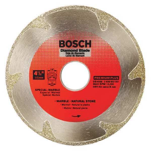 Diamond Saw Blade, DB Series, Blade Dia. 4 1/2 in, Arbor Size 7/8 in, Arbor Shape Round, Max. Blade Speed 13,300 RPM, For Use With Saw Type Angle Grinders, Tile Saws, Cutting Type Wet/Dry, Rim Type Continuous, Max. Cutting Depth 1 1/4 in, Materials Cut Marble, Grade Best, Cut Width 0.08 in, Blade Material Diamond