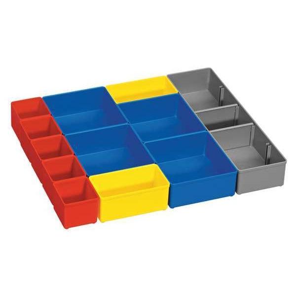 Storage Box Bin Cups, Compatible with Grainger Part Number 46U415, Compatible with Manufacturer Model No. i-BOXX53, Compatible with Product Type Bits, Blades, Fasteners, Hand Tools, Features 12 Modular Organizers - in Different Shapes and Sizes, Bolts, Color Coded for Easy Identification, Easily Sort and Organize Multiple Accessories, Screws, For Use With Bosch Storage System, Material Plastic, Overall Depth 2 1/4 in, Overall Height 6-3/4 In., Overall Width 10 in