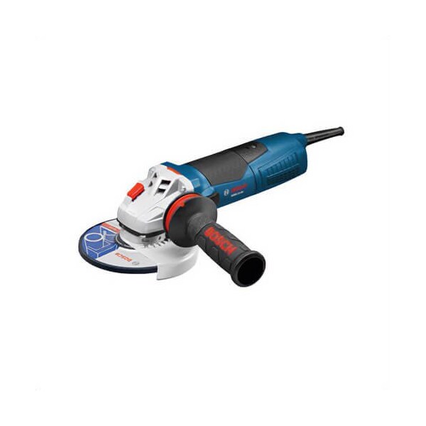 Bosch angle grinder high performance, 6 in wheel dia, 9,300 rpm speed, 120 VAC, 13 A, 2-position/Barrel Grip/Side handle, vibration control, Lock-On switch, 12.3 in L x 4 in W x 4 in H. .