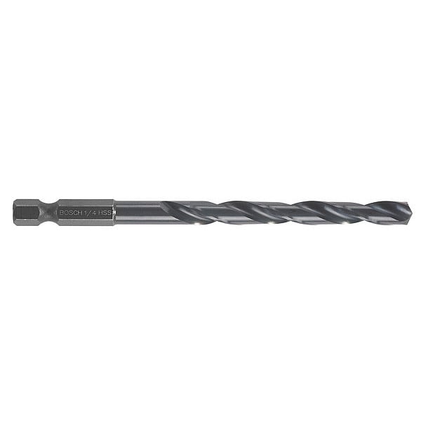 Hex Shank Drill Bit, 1/4 in, Drill Bit Point Angle 135 Degrees , Drill Bit Point Type Split Point, High Speed Steel, Black Oxide
