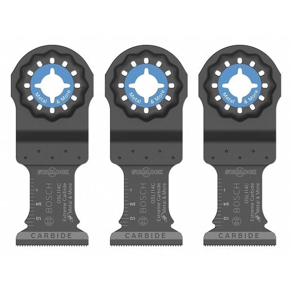 Oscillating Tool Blade, Blade Type Plunge Cutting, Connection Style Starlock, Blade Shape Straight, Blade Material Carbide, Blade Width 1 1/4 in, Blade Length 4 in, Overall Length 4 in, Maximum Oscillations per Minute 21,000, Primary Material Application Metal, Materials Cut Ceramic, Drywall, Metal, Wood, Cut Style Plunge Cut, Cutting Edge Style Toothed, Edge Material Carbide, Compatible with Adapter Bosch, Fein, Makita, Milwaukee, Rigid