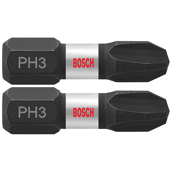 Driver Bit, Application - Tools Impact, Bit Style Phillips, Fastening Tool Tip Size P3, Hex Shank Size 1/4 in, Overall Bit Length 1 in, SAE, Impact Rated Impact Rated, Insert Bit, Package Quantity 2