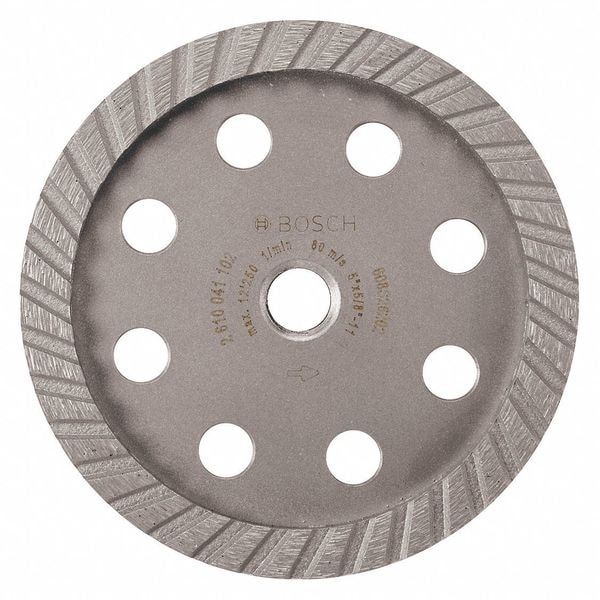 Segment Cup Grinding Wheel, Abrasive Material Diamond, Connector Size 5/8 In.-11, Connector Type Threaded Hole, Compatible Tool Type Angle Grinder, Concrete Planer, Primary Material Application Concrete, Masonry, Number of Segments 35, Overall Diameter 5 in, Segment Design Turbo, Maximum Operating Speed 11,000 RPM, Abrasive Depth 1/4 in
