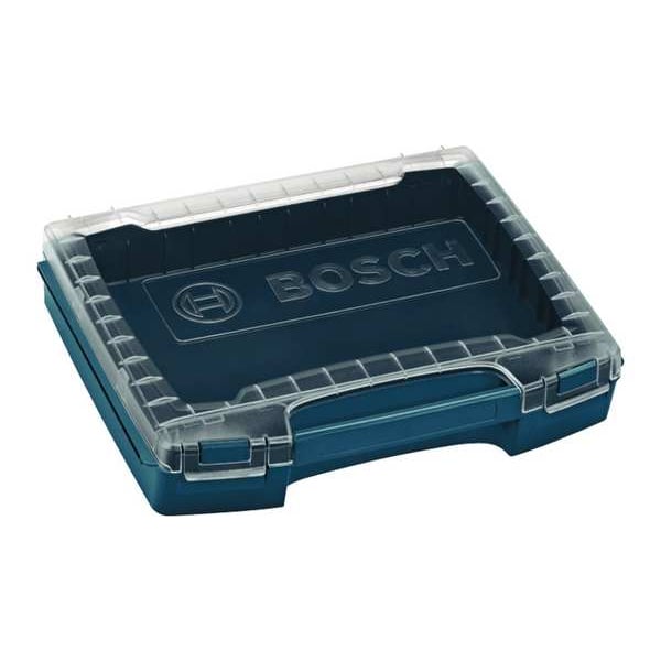 The BOSCH - I-BOXX72 is a plastic tool box designed to enhance organization and transportation of tools on the job site. This individual tool box, part of the i-BOXX series, measures 14-1/2" in length, 12 1/2" in width, and has an overall height of 3". It features one compartment for storing different tools separately and includes a thick drawer for additional storage. The toolbox comes with an integrated handle for easy carrying.