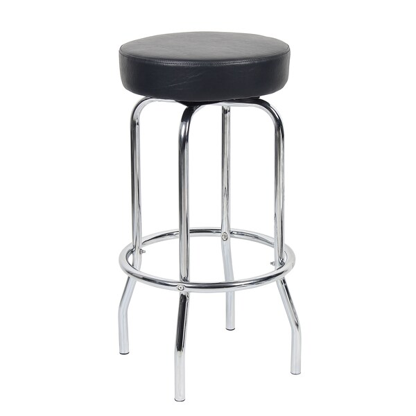 This simplistic and elegant stool is beautifully upholstered with ultra soft, durable, and breathable black CaressoftPlus, keeping you comfortable through extended hours of work. It has a plush, molded foam seat for enhanced comfort and durability. It also comes with a metal chrome frame with a footring for added leg and foot support. The seat rests on four sturdy metal chrome legs.This is a simplistic and stylish stool that can be utilized both in an office, and in a living space.
